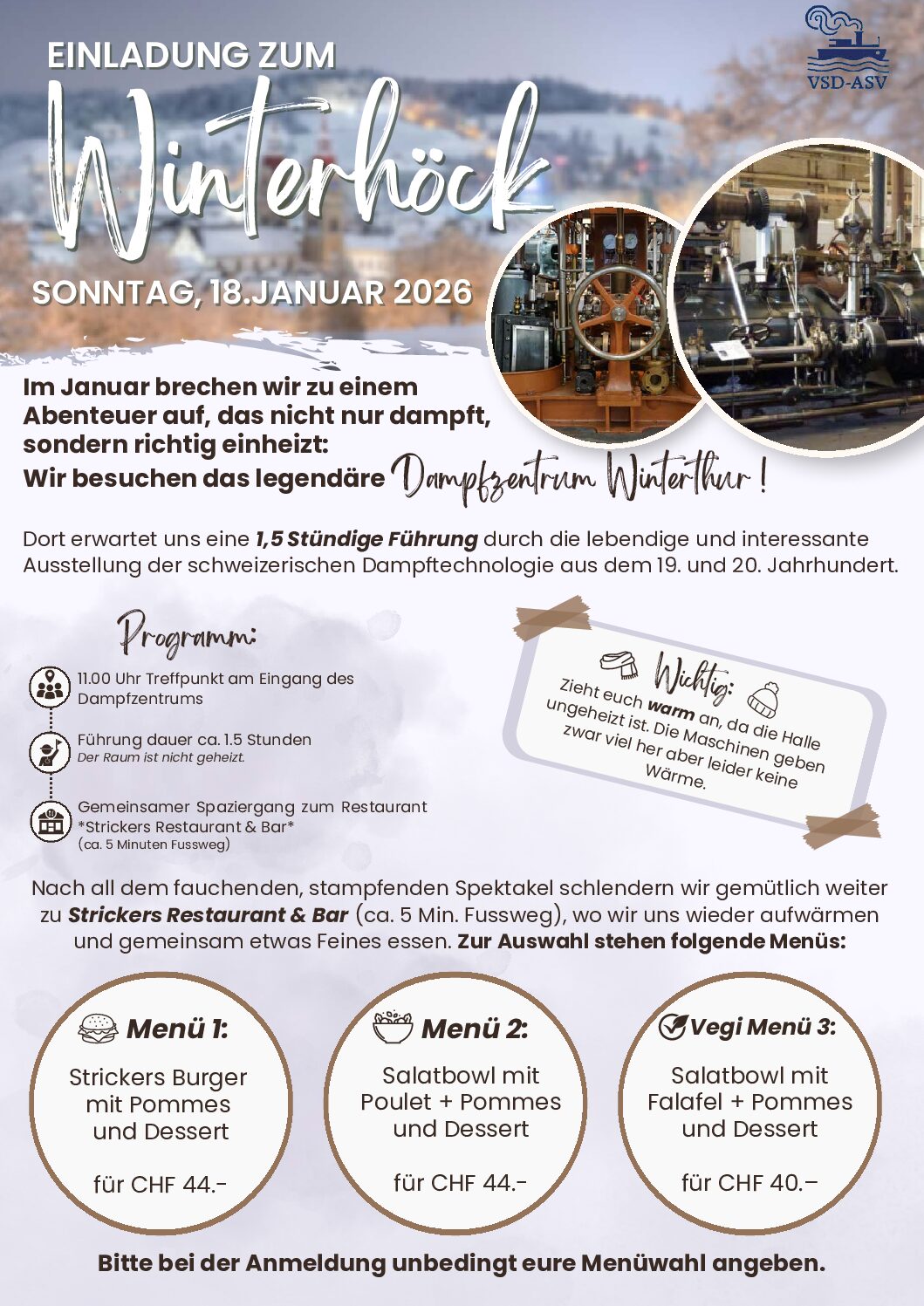 Die Einladungen zum Winterhöck im Dampfzentrum Winterthur werden per Post versandt.